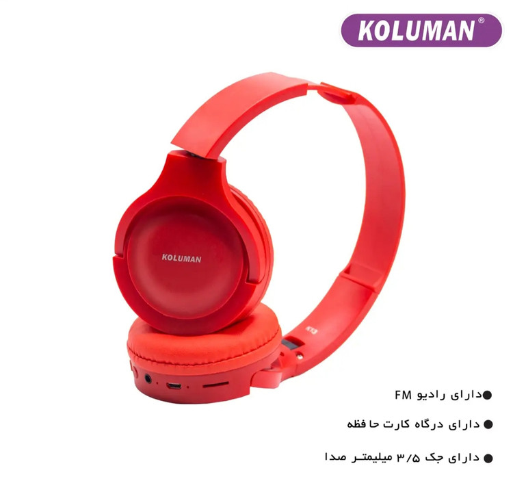 هدست Koluman K13: هدفون بیسیم سبک با اتصال بلوتوث پایدار، کیفیت صدای شفاف و باس عالی، مناسب مکالمه و موسیقی، طراحی راحت برای استفاده طولانی و باتری بادوام برای روزهای پرمشغله.